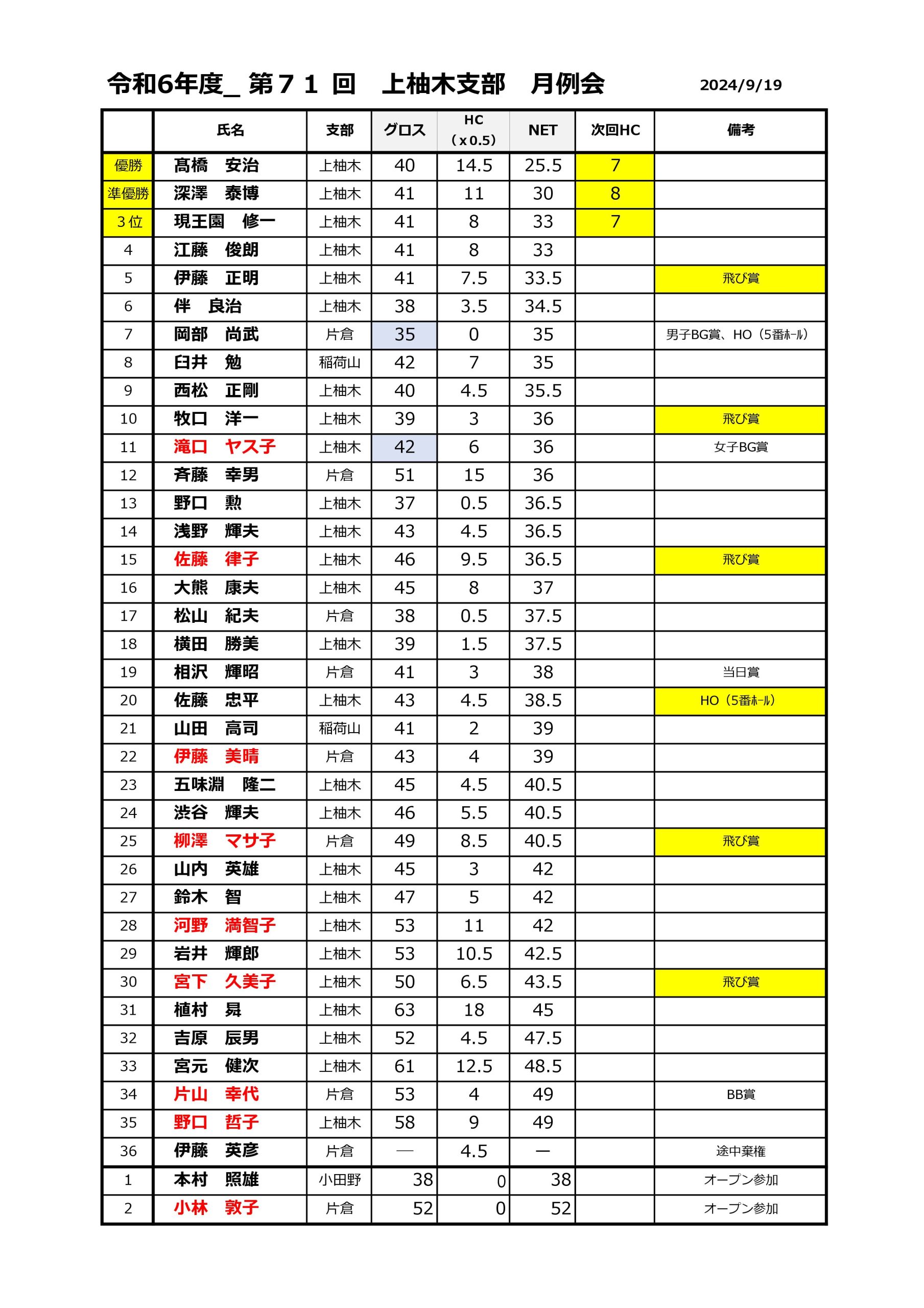 第71回上柚木支部月例会成績表 » 第71回上柚木支部月例会成績表