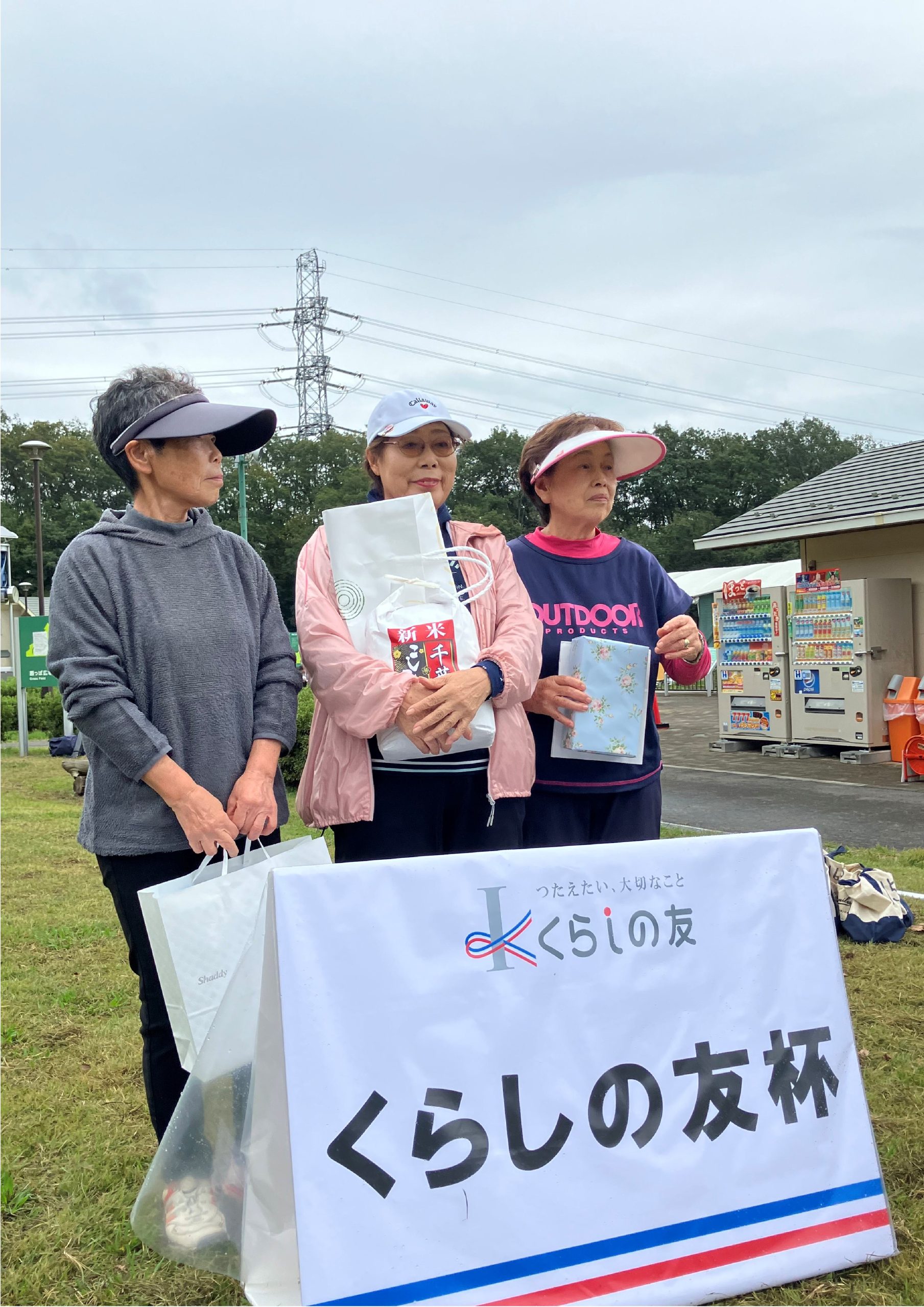 左より準優勝あきる野藤田キヱ子さん、優勝昭島手塚百合子さん、3位八王子宮下久美子さん