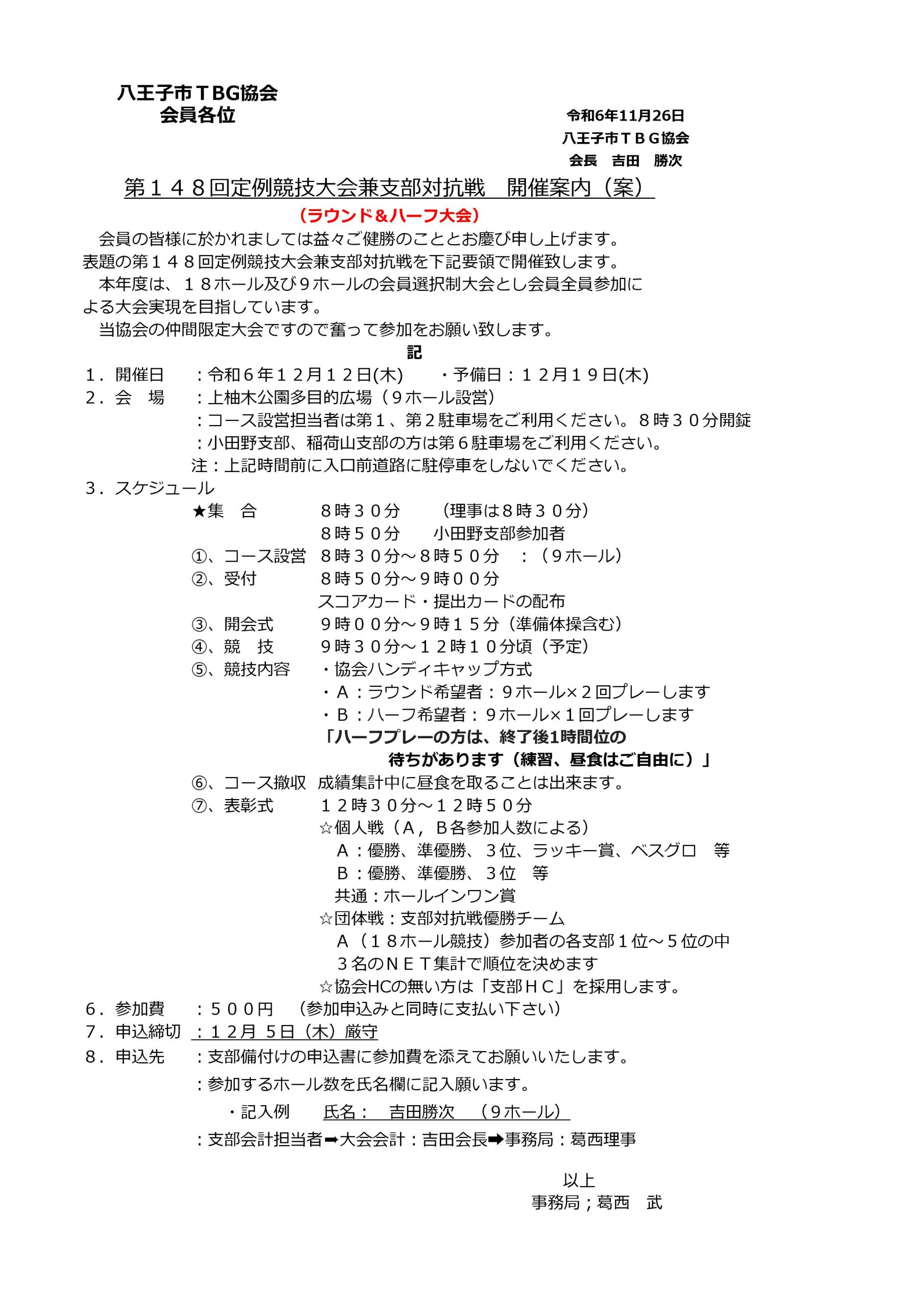 第148回定例競技大会兼支部対抗戦開催の変更案内 » 第148回八王子市TBG協会定例競技会兼支部対抗戦 開催案内