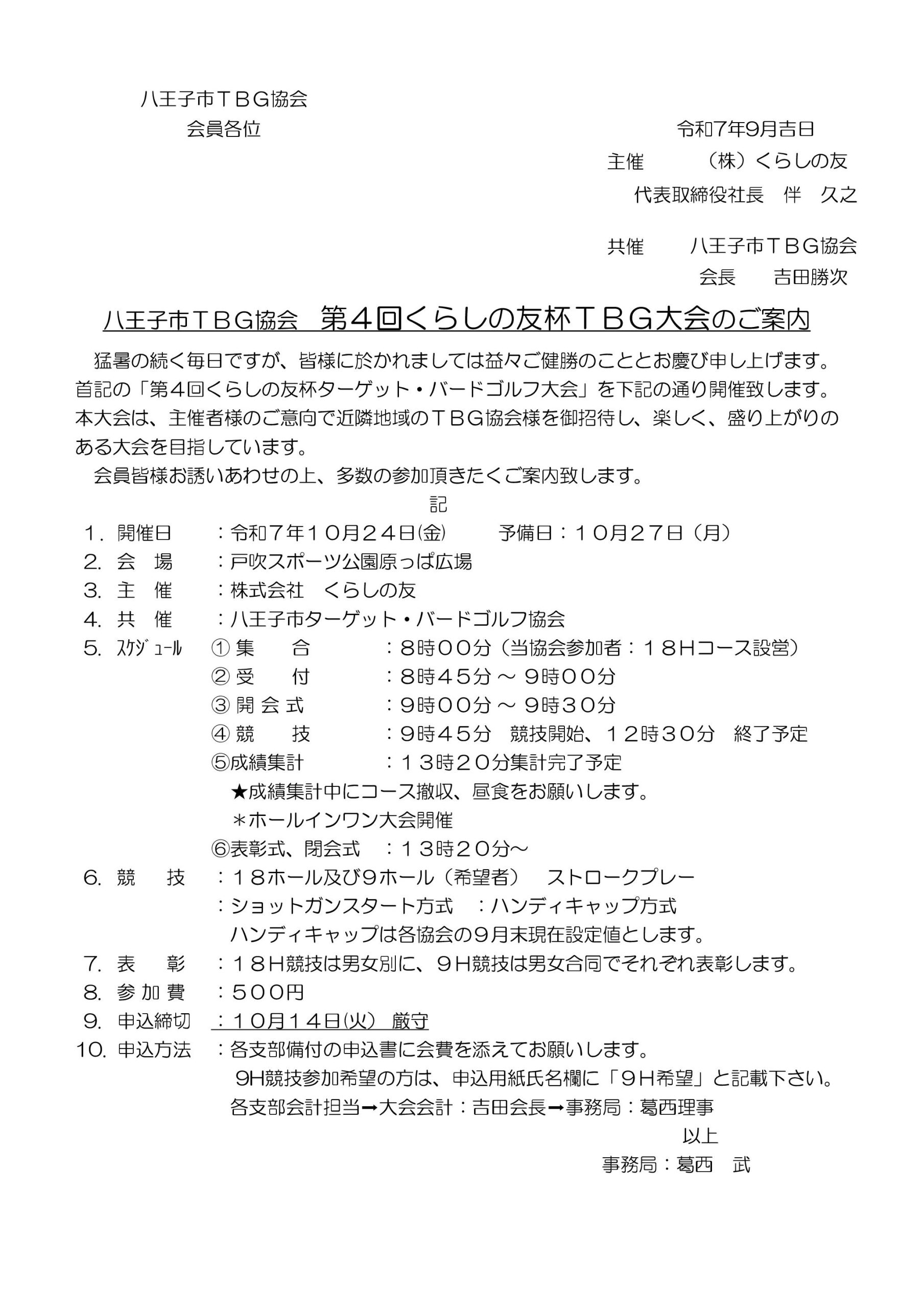 - 八王子市TBG協会支部別月例会実施要領