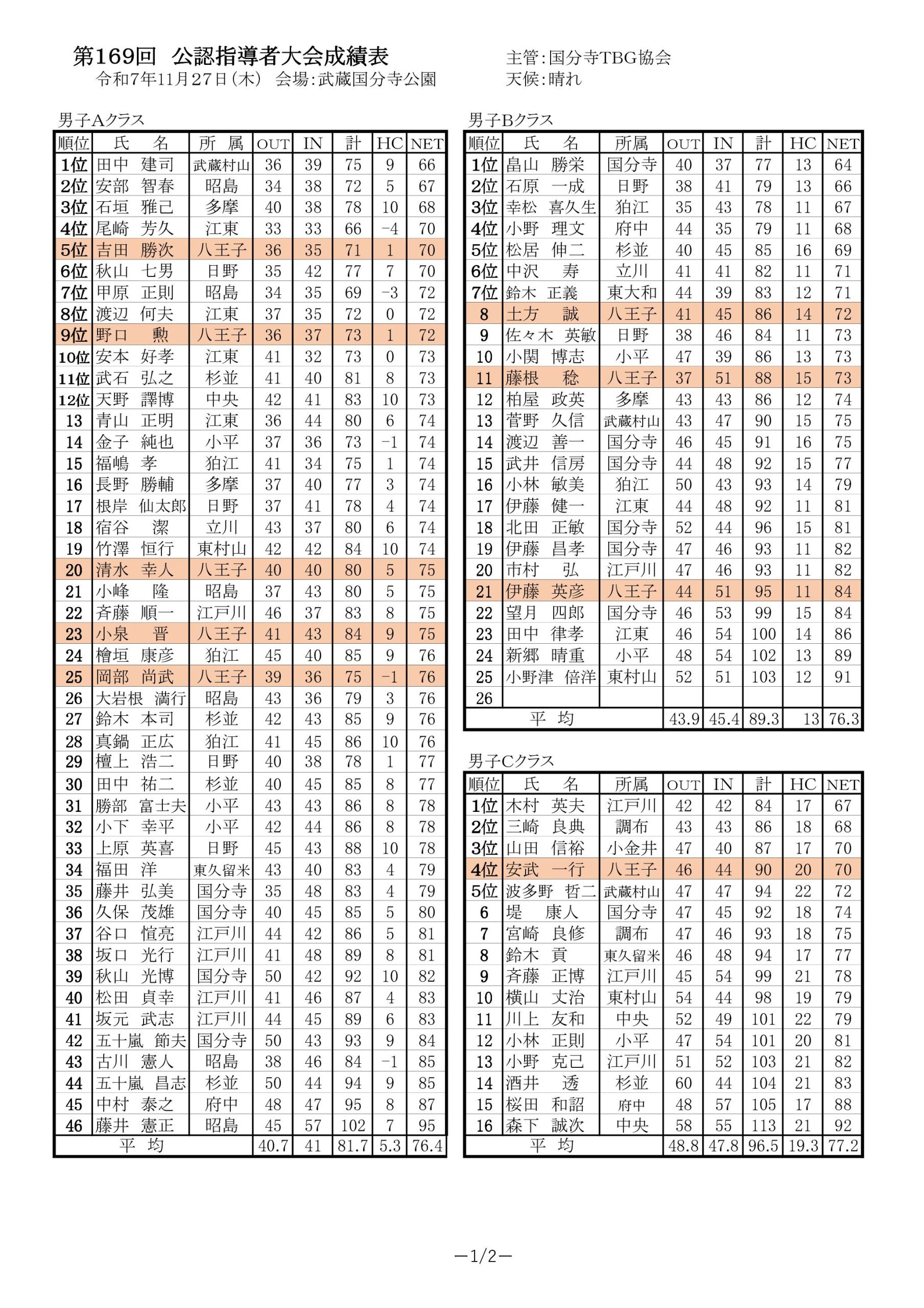 - 第169回東京都公認指導者大会成績表 2025-11-28