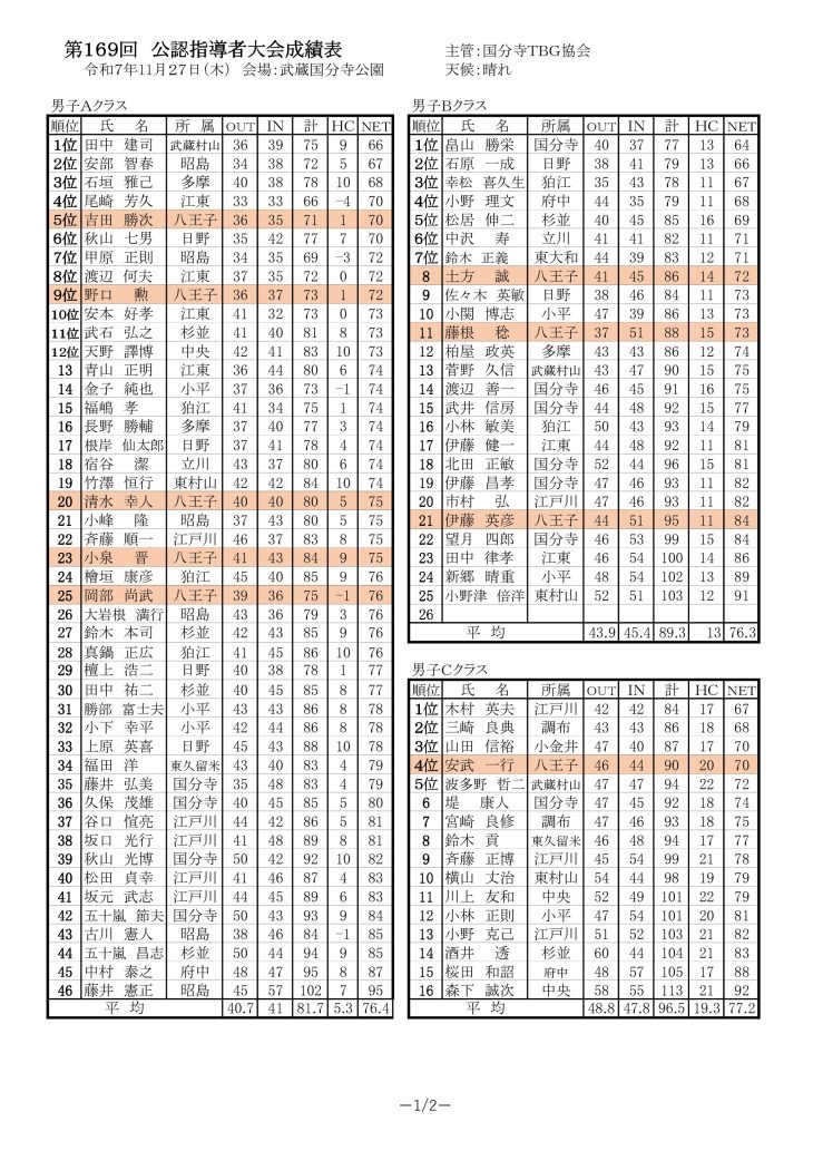 八王子市TBG協会は13名が参加し、男子Aクラス(