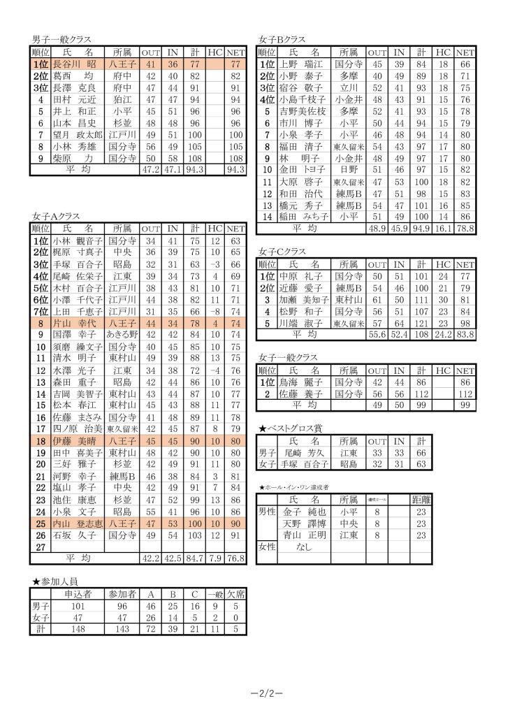 又、男子一般では小田野支部の長谷川 昭さんが1位入賞と2大会参加で
